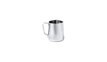 The practical steel jug is perfect for frothing milk or heating water and can be washed in the dishwasher.